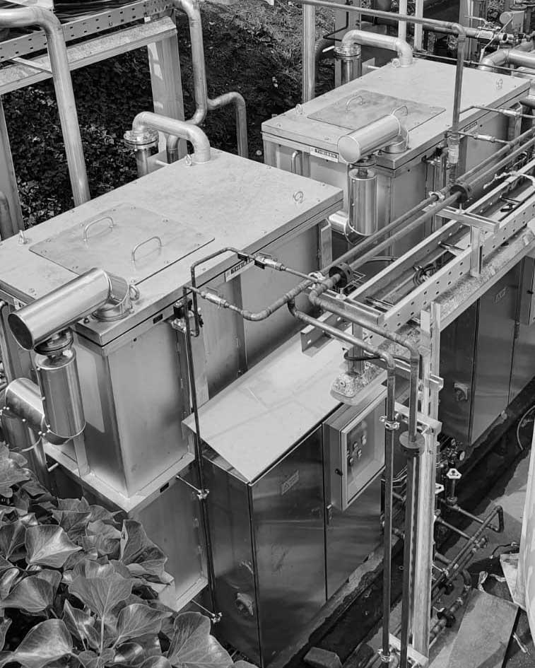 Fertigung von vier beheizten Wärmetauscher-Modulen zur Verdampfung von Stickstoff und Sauerstoff incl. Fernwärmeregelung, elektrischer Steuerung und Montage vor Ort.